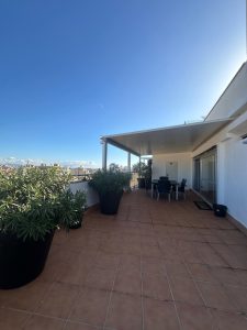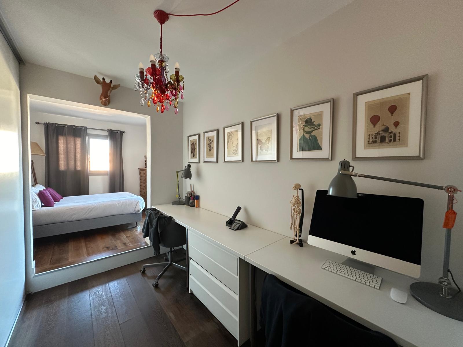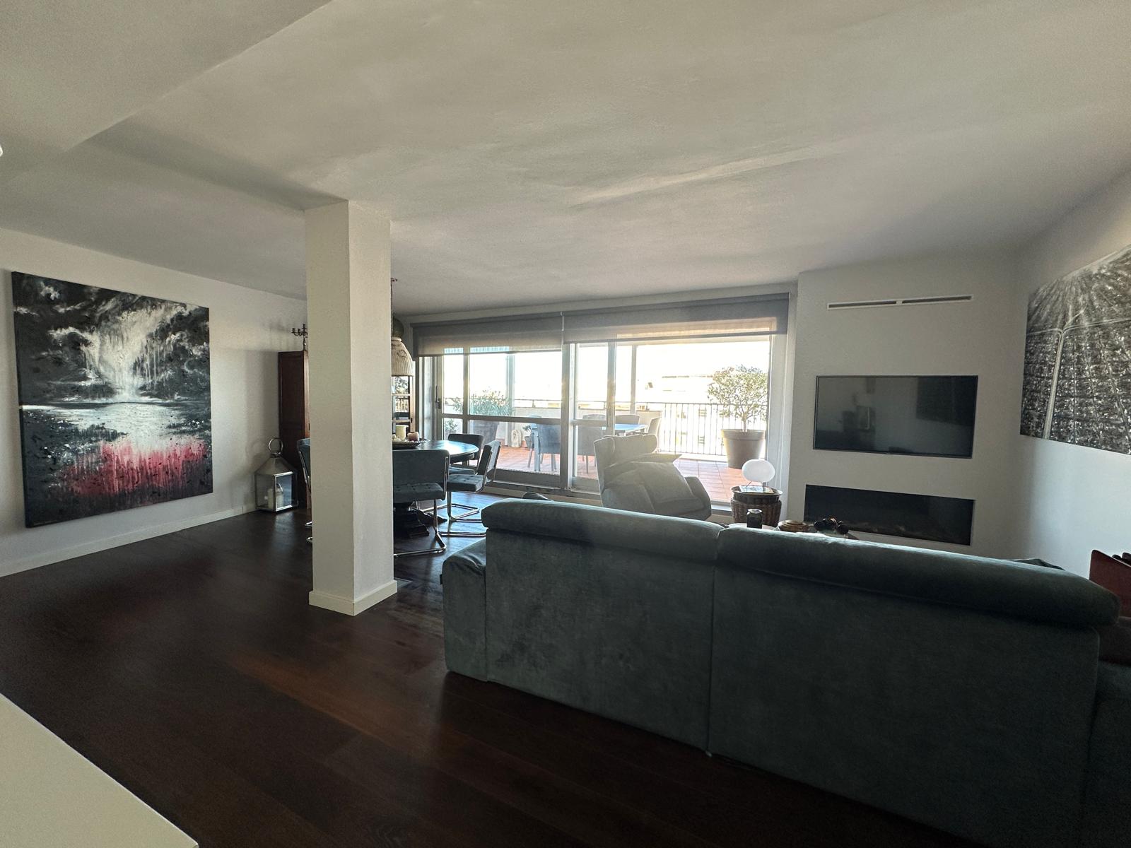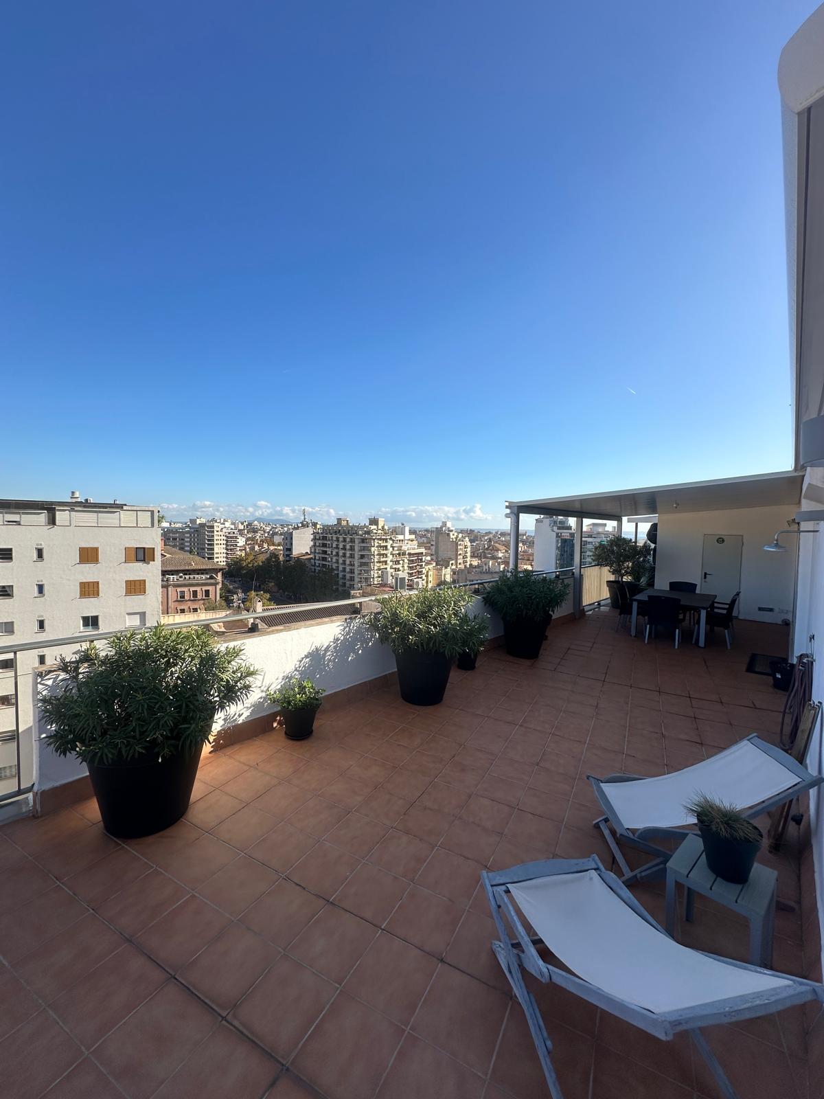Descripción: Descubre este impresionante ático recién reformado, diseñado para quienes buscan vivir con estilo y comodidad en pleno centro de Palma. Ubicado en un edificio moderno con dos ascensores, esta exclusiva vivienda cuenta con una espectacular terraza que rodea todo el inmueble, ideal para aprovechar al máximo el sol mediterráneo durante cualquier época del año, gracias a su orientación sureste. En el interior, te sorprenderá su diseño elegante y funcional. El salón, amplio y luminoso, destaca por su acogedora chimenea de gas, perfecta para crear un ambiente cálido en las noches más frescas. La cocina, de concepto abierto, está equipada con electrodomésticos de alta gama, ofreciendo un espacio ideal para cocinar y disfrutar. El ático dispone de tres dormitorios, todos con aire acondicionado para garantizar el máximo confort, y dos baños completos con acabados de calidad. Además, esta propiedad incluye una plaza de parking y un práctico trastero, sumando comodidad y funcionalidad a este exclusivo hogar. Una oportunidad única para vivir el lujo en el centro de Palma. ¡Ven a visitarlo y déjate cautivar! Mostrar toda la descripción