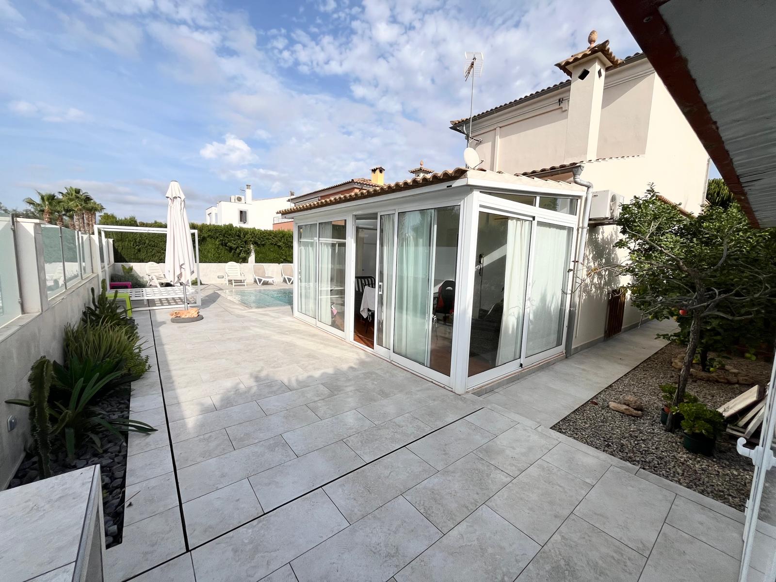¡Descubre el hogar de tus sueños en Es Pont d'Inca, Marratxí! Este precioso chalet unifamiliar, lleno de encanto y confort, te espera con todas las comodidades que siempre has deseado. Dividido en dos plantas, este inmueble destaca por su amplitud y diseño funcional. En la planta baja, te recibe un amplio y luminoso salón comedor que conecta con una cocina totalmente equipada, con despensa y acceso a una terraza adicional. Esta planta también alberga dos habitaciones dobles, un baño completo, un práctico trastero bajo las escaleras y una galería con lavadora, que podría transformarse en una habitación extra. Además, cuenta con un encantador porche trasero acristalado que da acceso al jardín, donde se encuentra la joya del exterior: una piscina privada, zona de barbacoa y un trastero adicional, rodeado por terrazas y un precioso jardín que envuelve toda la propiedad.
